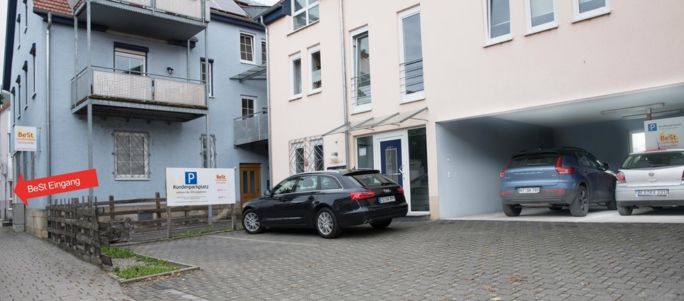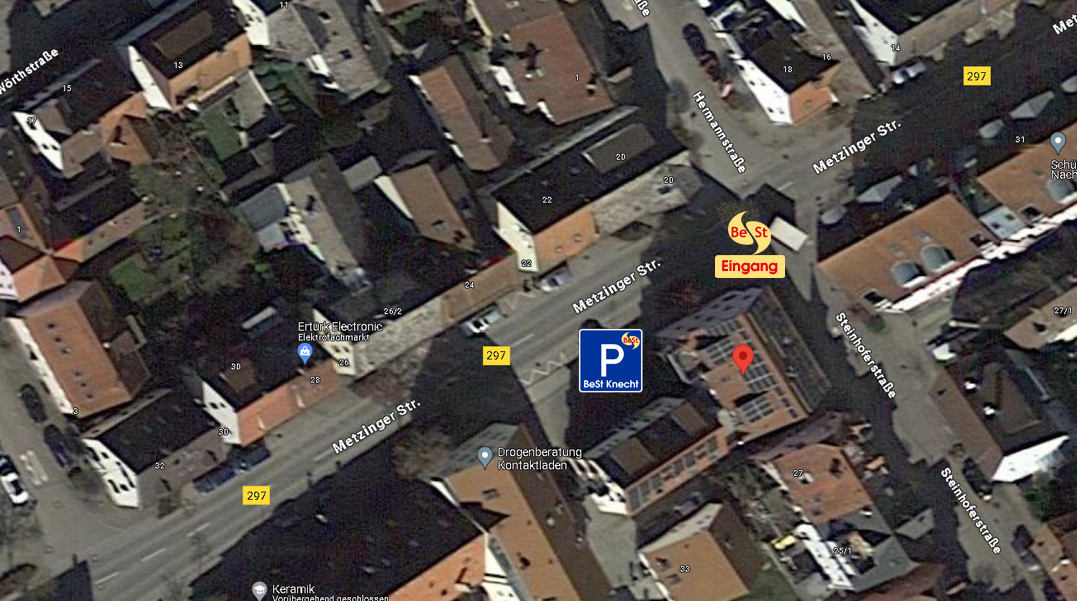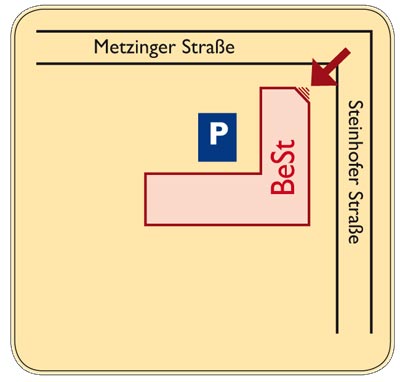 Bitte nutzen Sie gerne unsere Kundenparkplätze im Hof, parallel zur Metzinger Straße, bevor Sie die Steinhoferstraße kreuzen.