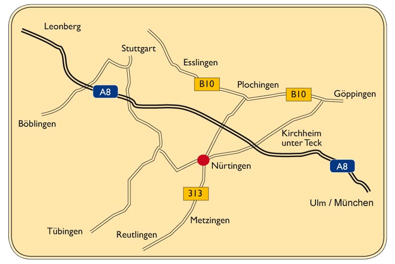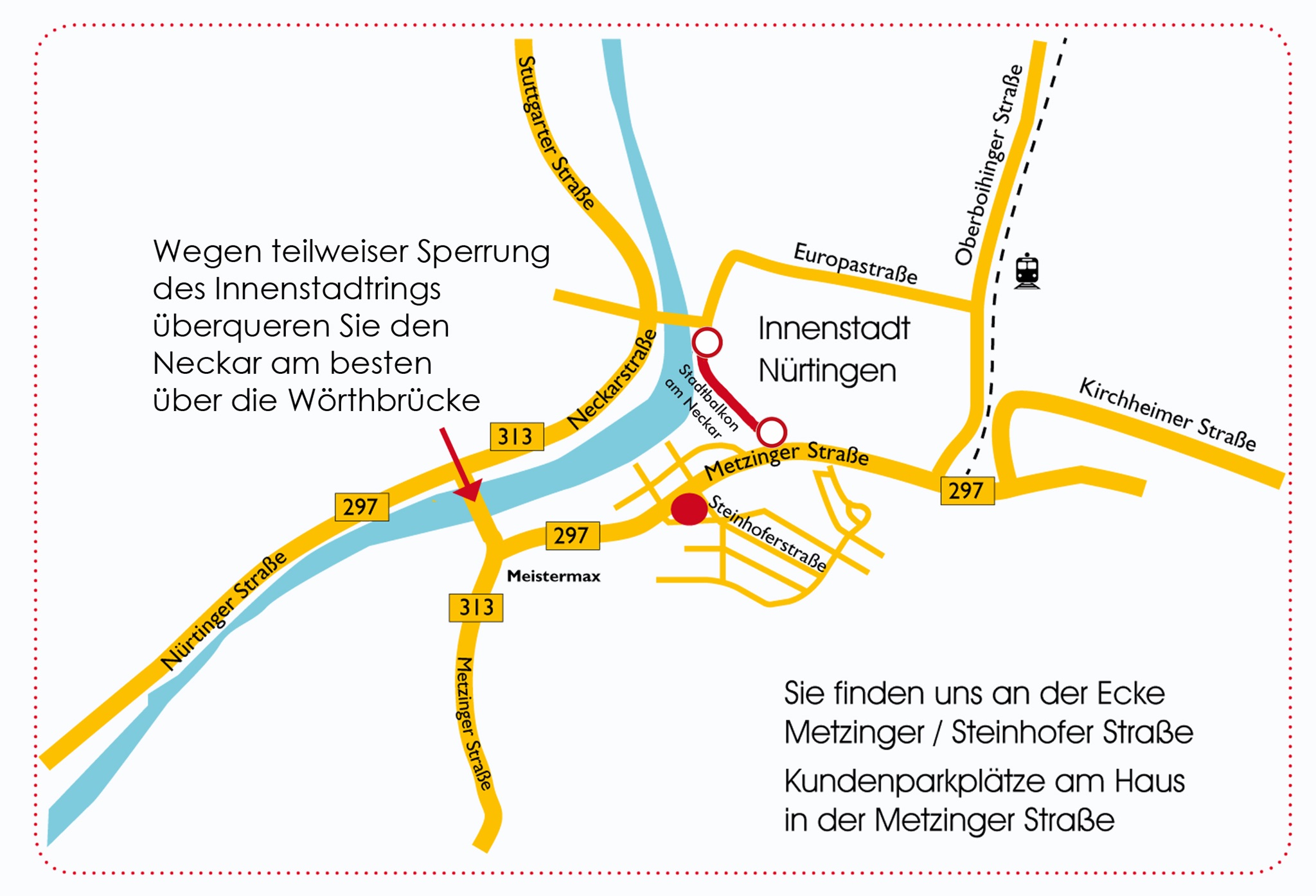 Sie finden uns in Nürtingen in der Nähe des Einkaufcenter Meistermax.